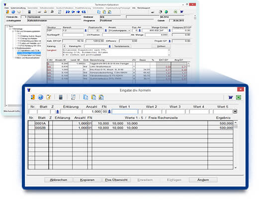 Einfache und schnelle Kalkulation mit oder ohne Stammdaten, Aufmaß, Fakturierung und Nachkalkulation.